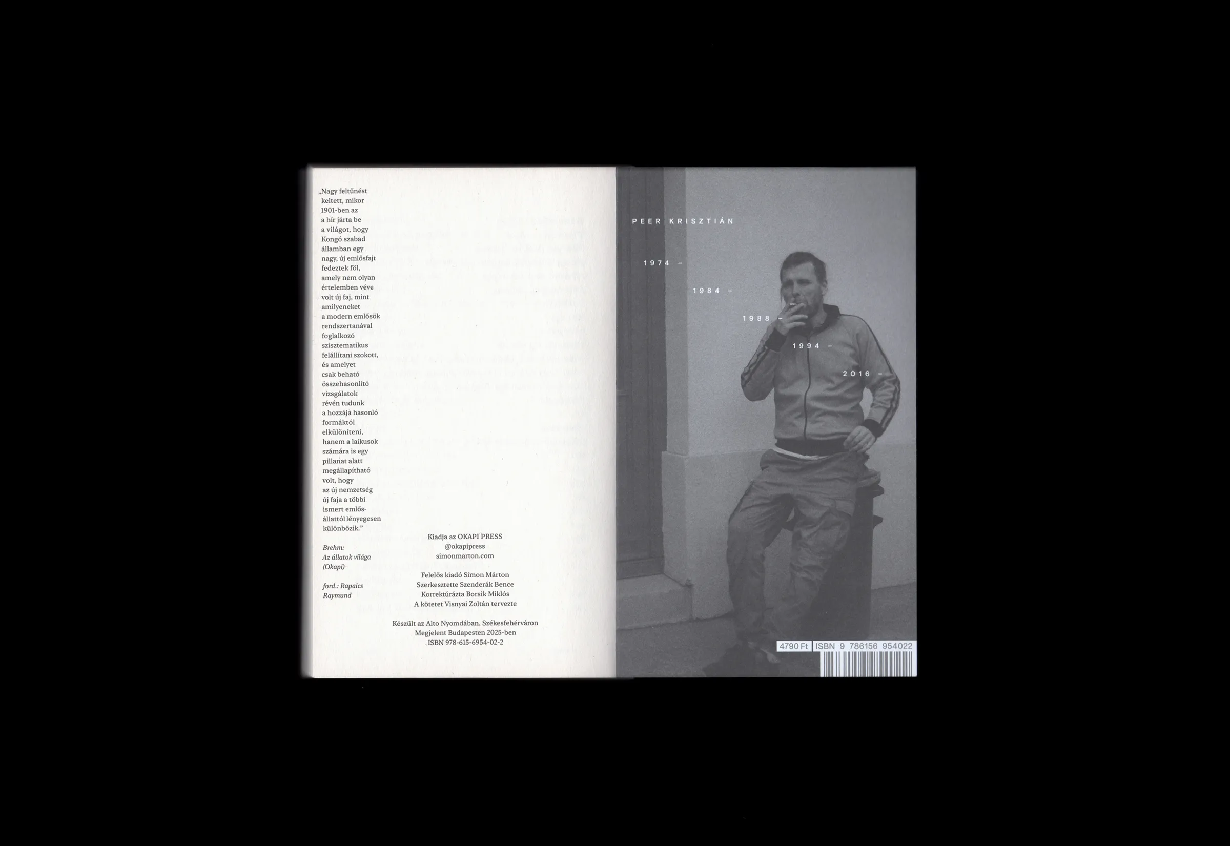 Török András → Visnyai Zoltán Tibor eredeti sorozatot tervezett az Okapi Könyvek sorozathoz. Azt lehet mondani, hogy a sorozat darabjai a lehető legegyedibbek, az egyes címeket csak a méret és a belső tipográfia köti össze. A tervező óriási munkát fektetett az egyes könyvek arculatának kialakításába. Ha külön nézzük őket, szélsőségesen egyedi alkotások, ha egymás mellé tesszük őket, tetszetős sorozat.
